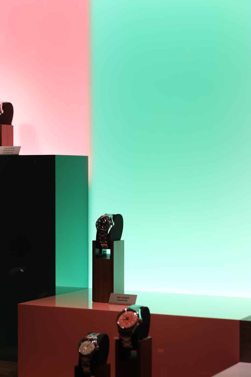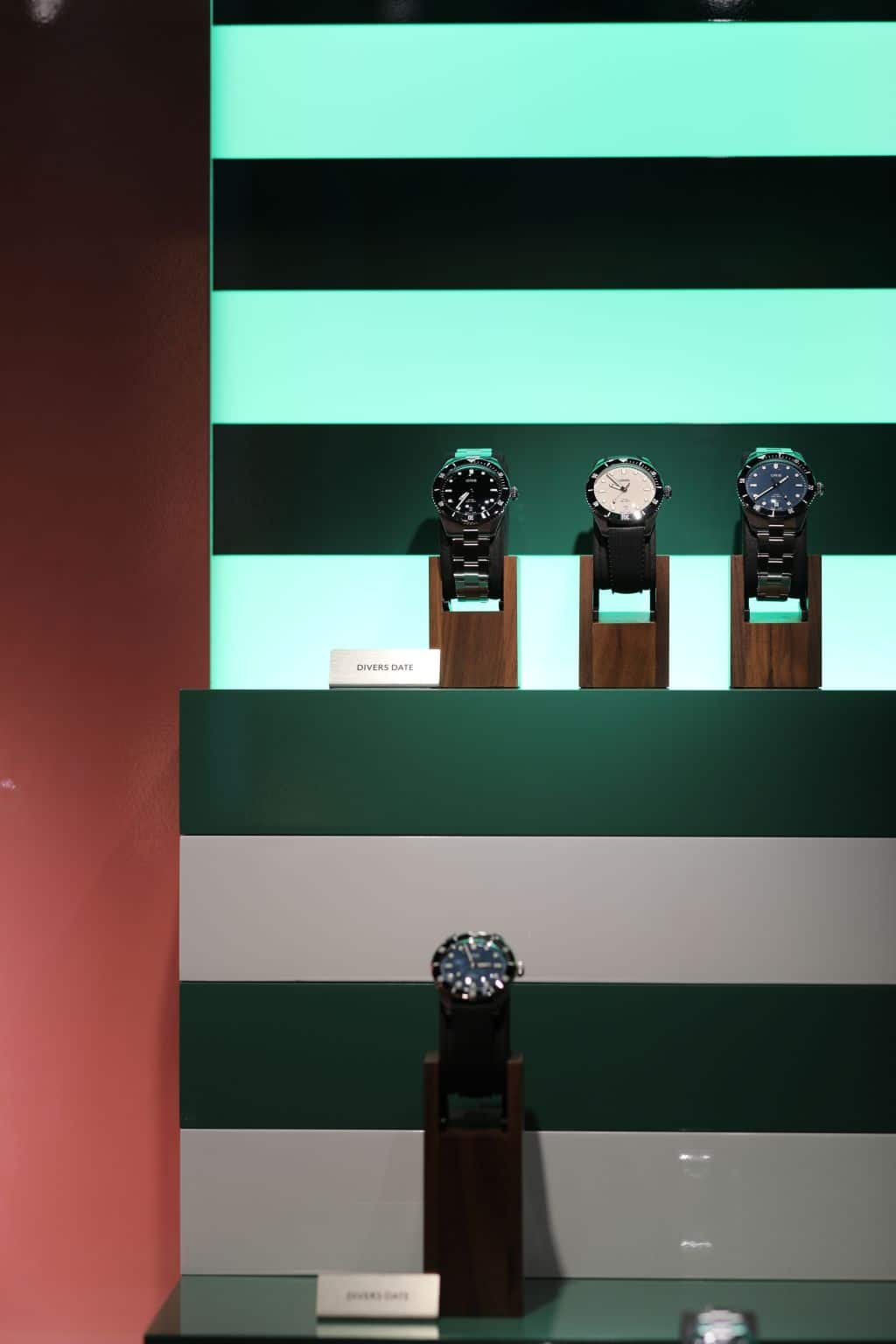 Un jeu d’espaliers, de lignes géométriques et de damiers traduit la précision technique ainsi que les nouveaux codes institutionnels de la maison ORIS. En arrière-plan, l’évolution de la lumière révèle progressivement les nuances colorées associées à cette nouvelle identité.